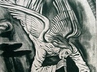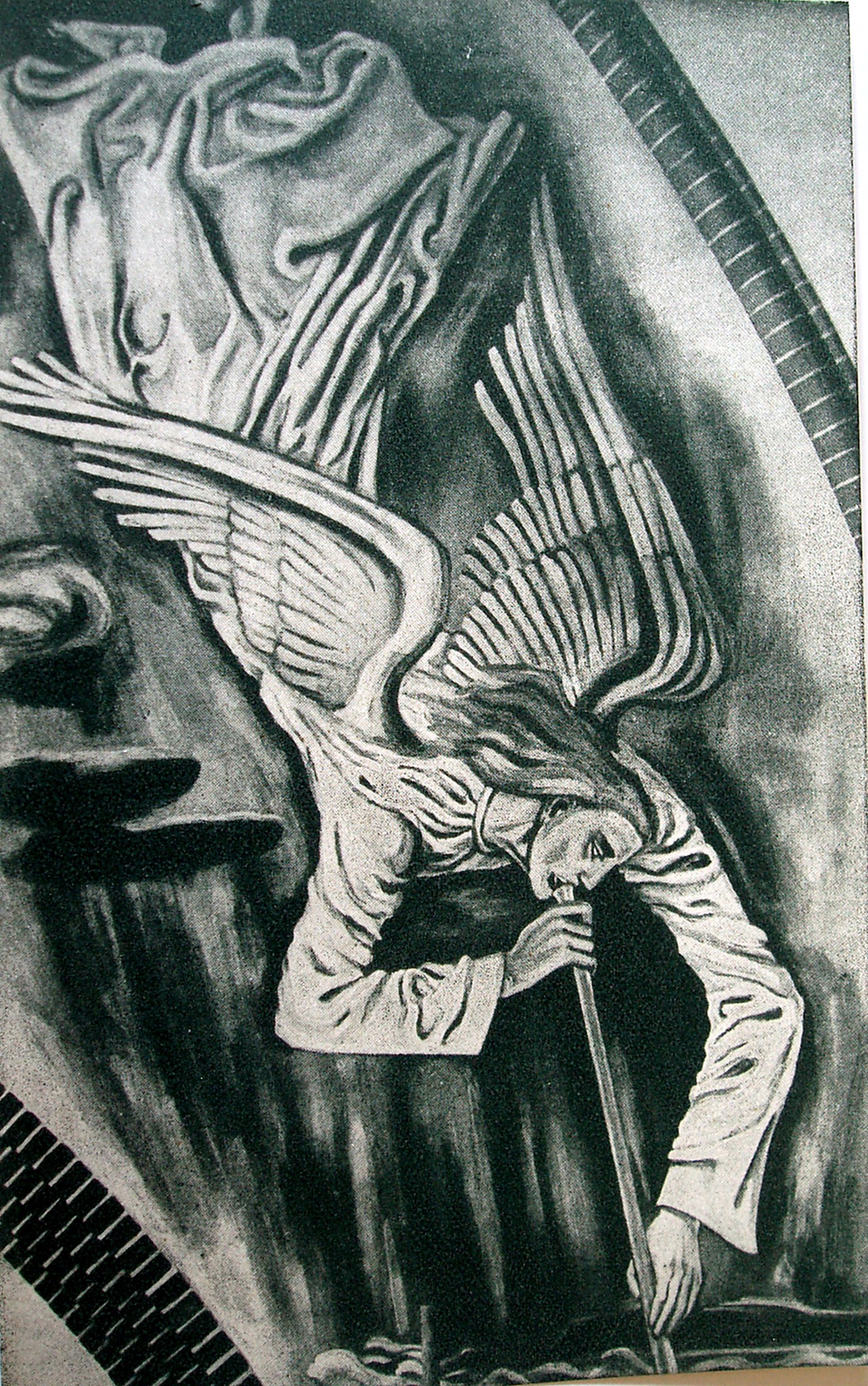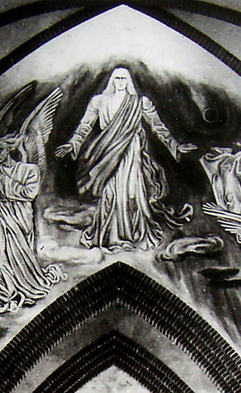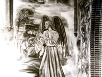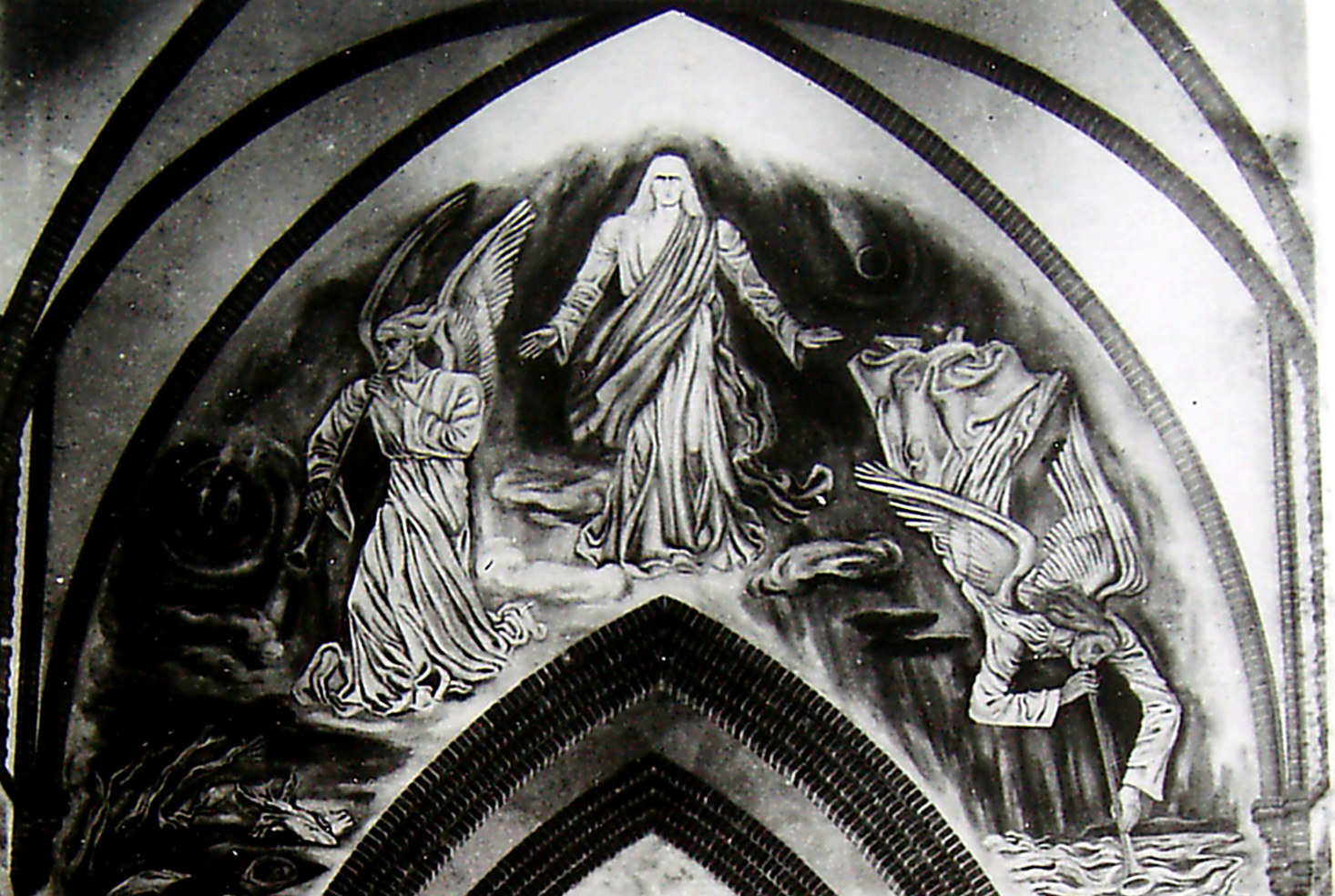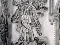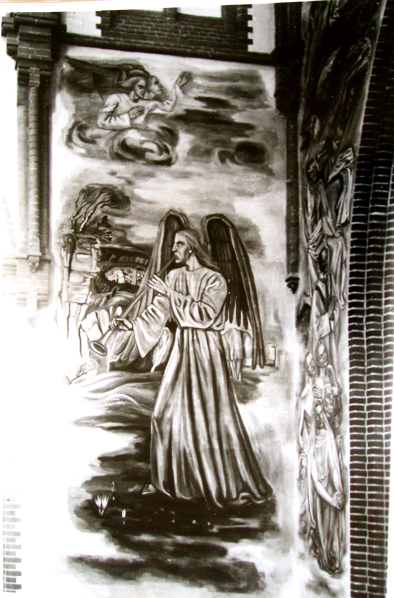 1968 In gleicher Technik in der Unterkirche in Brehme-Eichsfeld/ Thüringen die Gemälde: “Auferstehung Christi“, “Engel mit dem Goldenen Buch“ (Johannis-Offenbarung), Oberhalb des Altarschreines “Hl. Geist“ und über der Tür zur Sakristei “Verklärte Dornenkrone“;
