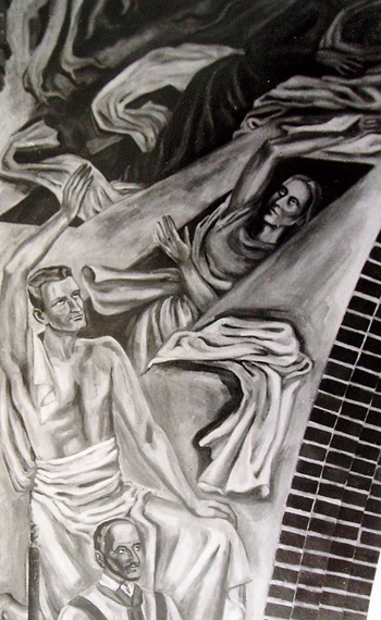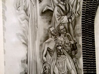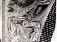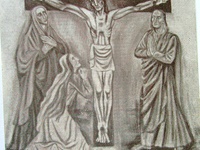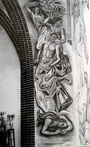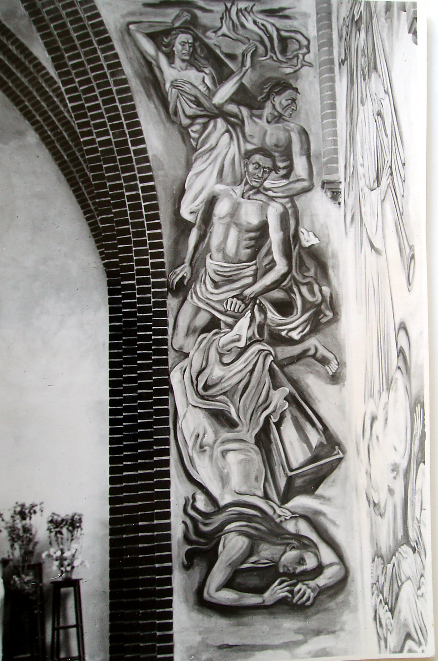 1967/68 Ein weiterer 40qm großer, symbolisch aufgefasster Kreuzweg entstand in fresco- secco Technik in der Kirche Brehme-Eichsfeld/ Thüringen;