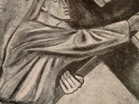 1946 bis 1950 ein Kreuzweg an den Seitenwänden im Hauptschiff der Christuskirche Rostock (ebenfalls zerstört);
